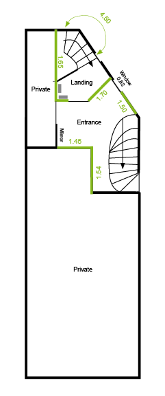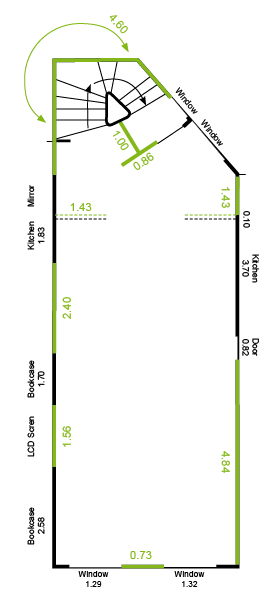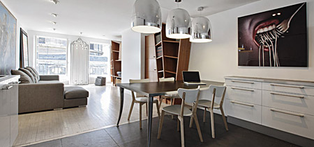 This area is 60 square meters with an entrance, an open plan kitchen, and an exhibition lounge.