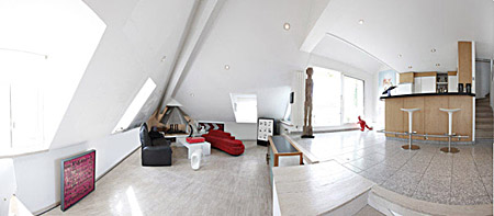 The third level is 90 square meters, which is updated with the latest trends. It has an exhibition space with a bar that opens onto a shaded terrace that is 10 square meters, as well as a bedroom and bathroom.